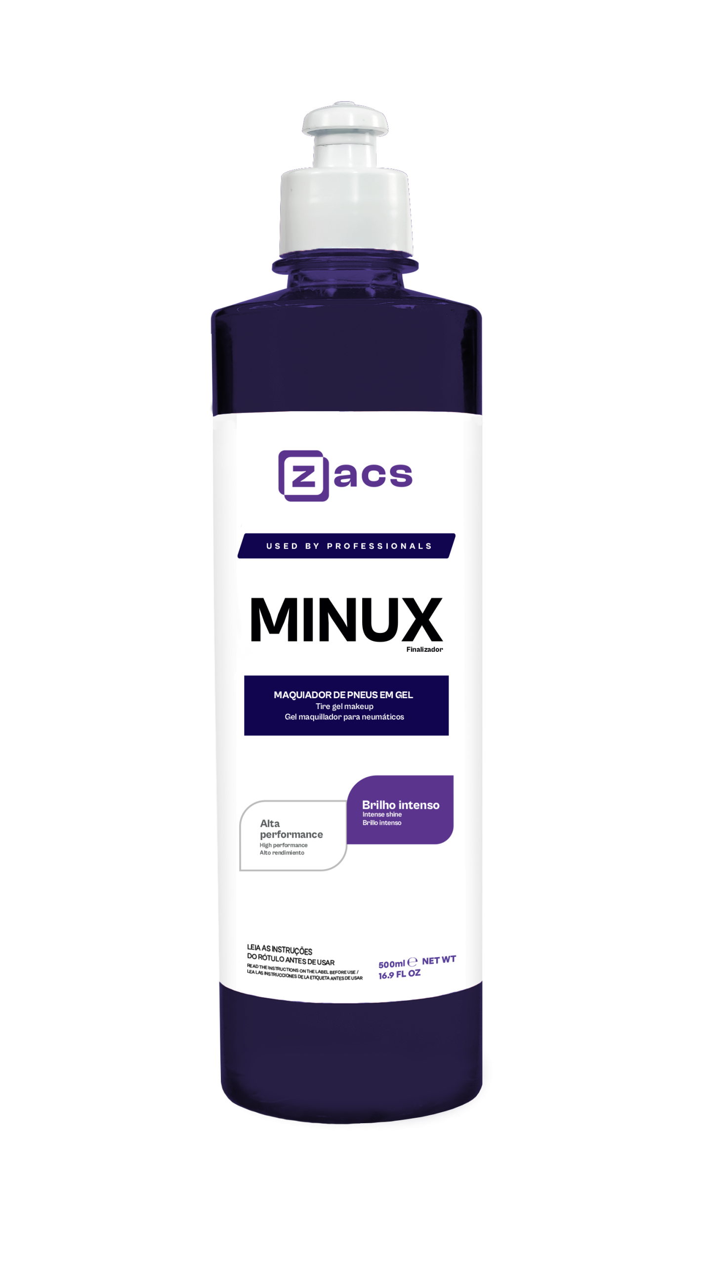 Minux é um gel maquiador de pneus de alta performance desenvolvido para dar um brilho intenso, duradouro e cobrir sinais de envelhecimento dos pneus, mesmo que sujos, proporcionando um excelente custo-benefício. Ideal para deixar os pneus com aspecto renovado e acabamento profissional.