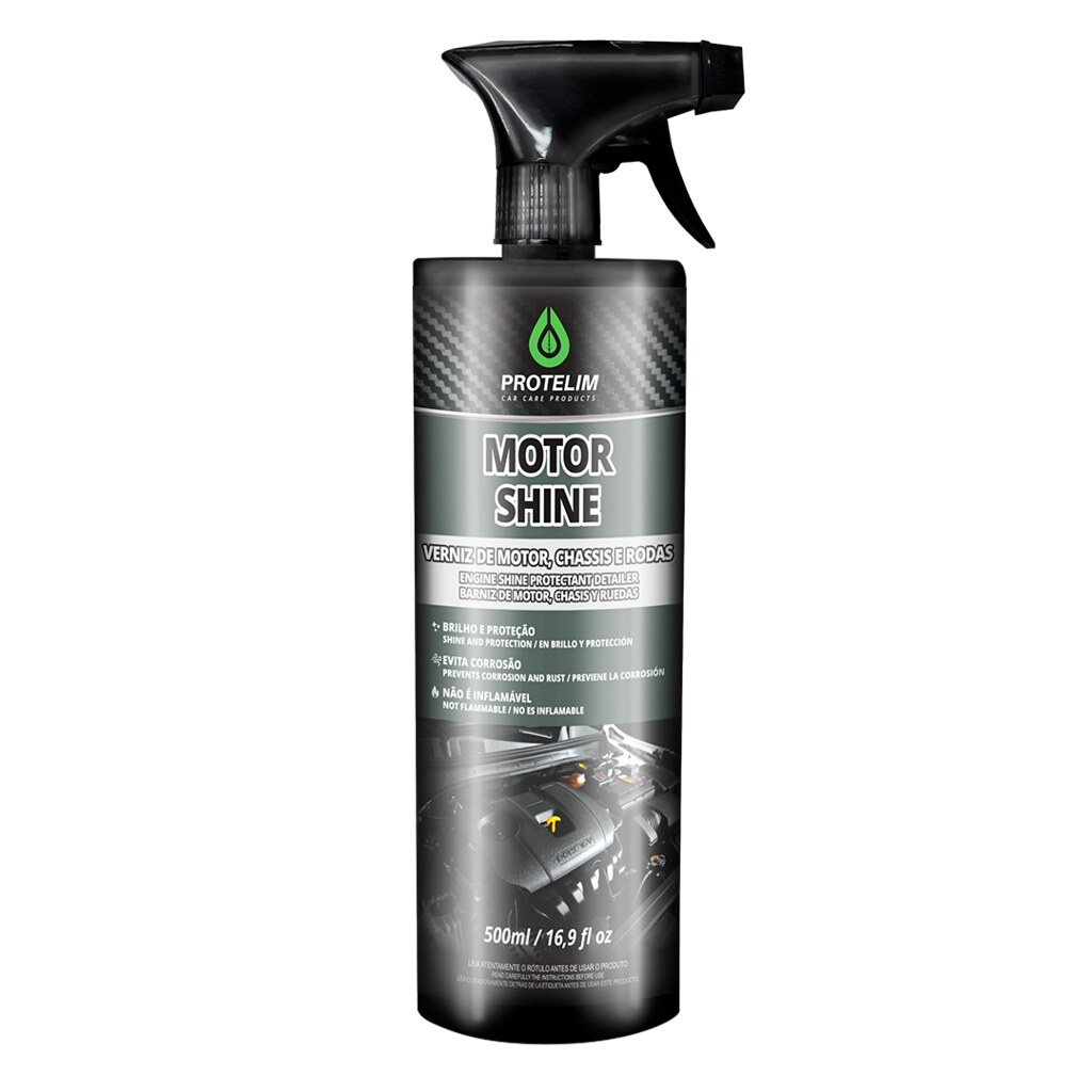 MOTOR SHINE é um produto especialmente desenvolvido para dar proteção, brilho e renovar as partes metálicas, plásticas, emborrachadas e partes pintadas do cofre do motor, chassi e caixas de roda.