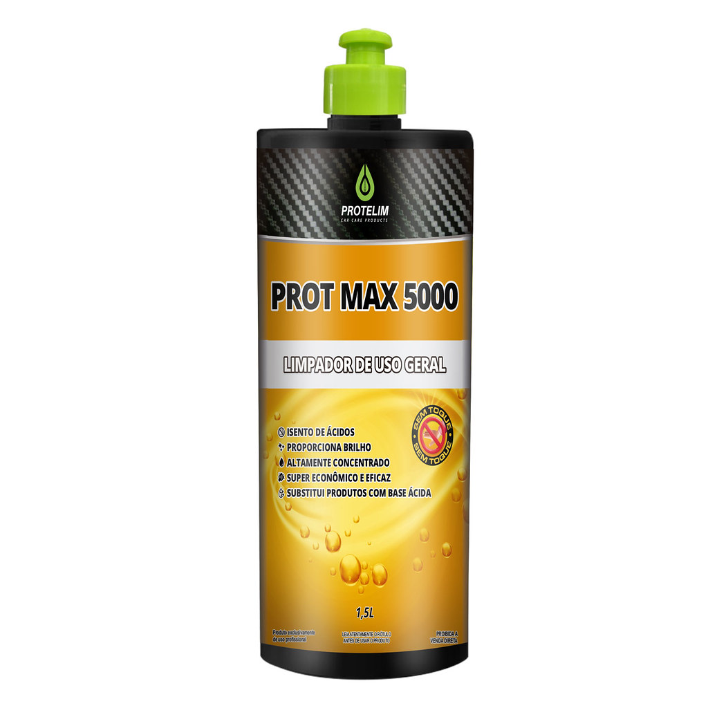 PROT MAX 5000 é um ultra limpador de uso geral concentrado, à base de água, extremamente eficiente e econômico. PROT MAX 5000 penetra profundamente nas superfícies, dissolvendo e extraindo toda a sujeira. Eficiente na remoção de gorduras, óleos, graxas, incrustações etc.