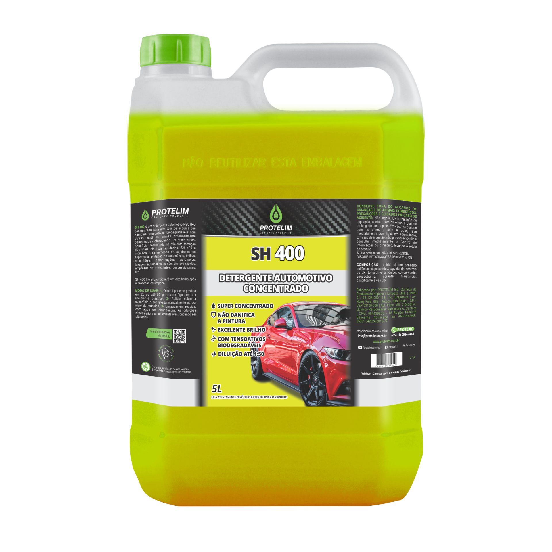 PROT SH400 é um detergente automotivo concentrado de alto rendimento, indicado para superfícies pintadas, carrocerias de veículos, náuticos, aeronaves, etc.